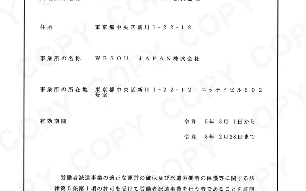 「労働者派遣事業」開始!
